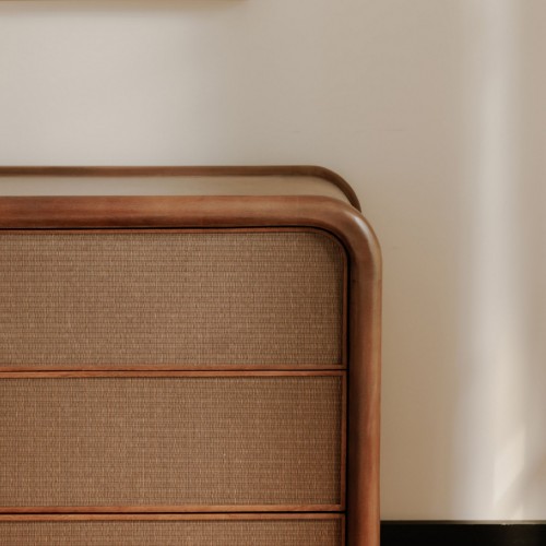 Materials: Solid Mango Wood Frame, Tatami-Mat Drawer Fronts, Wood and MDF Drawer Boxes