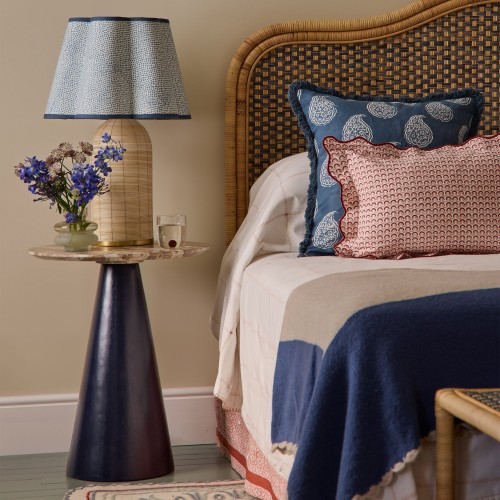 Our new pedestal side table is a celebration of colour and form. Its distinctively veined circular Capri Beige Marble top sits on an elegant conical painted wooden base painted in rich shades of green, red or blue. The two elements create a sophisticated and architectural statement that will look stunning beside your sofa, accompanying your favourite armchair, or even by your bed.