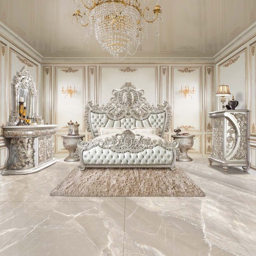 Sandoval – Eastern King Bed – Beige Synthetic Leather & Champagne