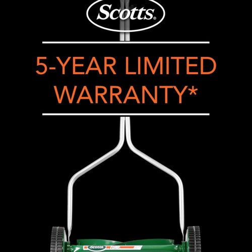 - Lightweight manual mower with T-style handle with a comfortable cushioned grip for greater comfort and maneuverability of the Scotts push lawn mower