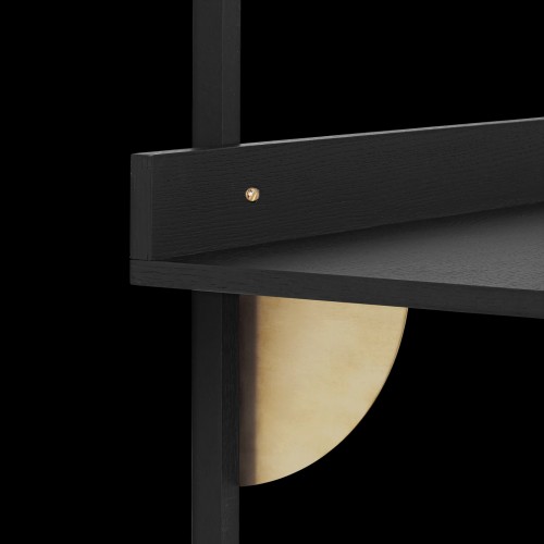 A new and modern take on Mid-century shelving units, Sector is defined by its sturdy simplicity and classic combination of wood and brass. A short border at the end of the desk forms a small, narrow space that’s ideal for propping up hand-written notes or a favourite photograph. Use the Sector Desk as a standalone surface or combine it with the Sector Shelves of your choice to form one integrated and cohesive workspace.