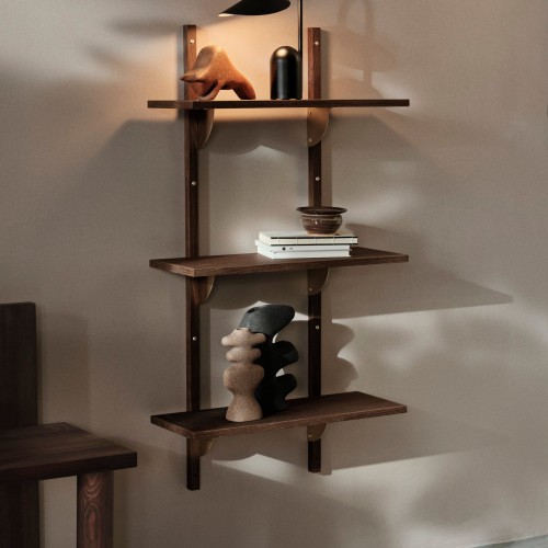 Sector Shelf – Triple – Narrow – Smoked Oak/Brass