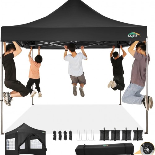 - 𝐒𝐇𝐀𝐃𝐄 𝐈𝐍 𝐒𝐄𝐂𝐎𝐍𝐃𝐒: Push the 𝗰𝗲𝗻𝘁𝗿𝗮𝗹 𝗹𝗼𝗰𝗸 𝗯𝘂𝘁𝘁𝗼𝗻, and your pop up canopy 10×10 instantly opens, ready to provide shade. Perfect for 𝗼𝗻𝗲-𝗽𝗲𝗿𝘀𝗼𝗻 convenience!