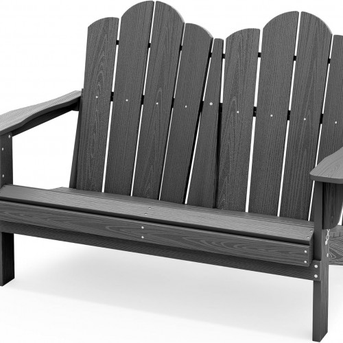 SERWALL 2 Person Adirondack Loveseat, HDPE All-Weather Folding Adirondack Bench Chair, Outdoor Adirondack Chair Set of 4, White