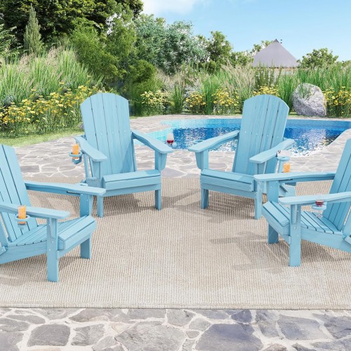 SERWALL Adirondack Chair with Cup Holders – Composite Adirondack Chairs HDPE Outdoor Chairs All Weather Use- Light Blue