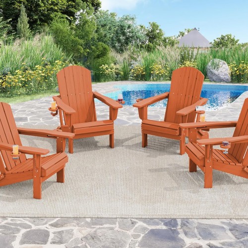 - HDPE Material: Crafted from weather-resistant HDPE, this Adirondack chair resists denting, fading, cracking, peeling, and rotting in harsh conditions – suitable for year-round outdoor use.