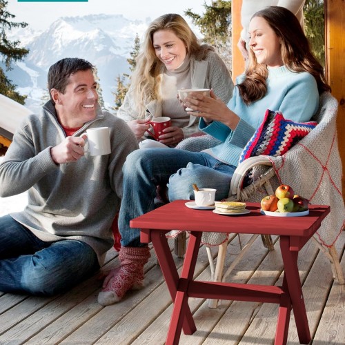 SERWALL Folding Adirondack Side Table, HDPE Small Outdoor Table, No Assembly Required End Table for Backyard Pool Porch Garden Lawn, Red