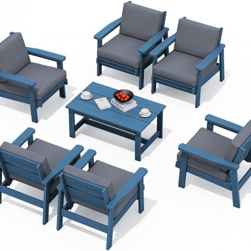 SERWALL HDPE Outdoor Couch, Black Frame and Grey Cushion