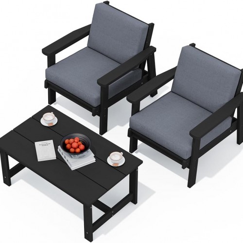 SERWALL Outdoor Loveseat, Blue Frame and Khaki Cushion