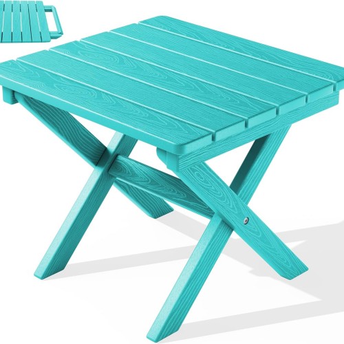 SERWALL Small Folding Side Table, HDPE Outdoor End Table for Patio, Porch, Deck, Pool, Gray