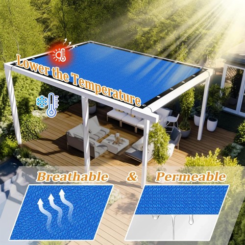 Shade&Beyond Customized Size 90% Sun Shade Cloth with Grommets, 14′ X 20′ Pergola Shade Cover Canopy, Mesh Tarp Sun Screens for Patio, Outdoor, Garden, Backyard GN01, Blue