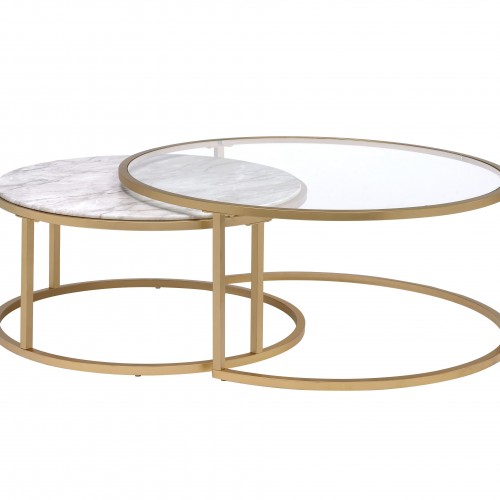 Shanish – Engineered Stone Top Nesting Table Set – Gold