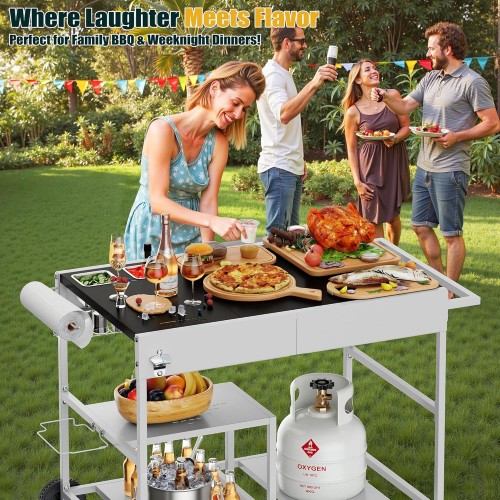 Shintenchi Pizza Oven Cart Table with Topping Station and Wheels, Outdoor Tabletop Grill Table Stand, Movable Food Prep Workcart Fits for Ninja and Blackstone Woodfire Grill
