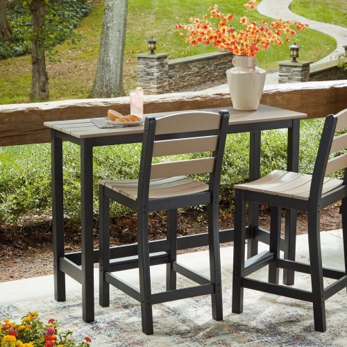 This counter height table and bar stool set is an expert blend of durability and style. Designed with casual contemporary style in mind, it keeps your patio or porch on trend with a neutral two-tone finish. And with its sturdy wood-look construction, it’s built for longevity.