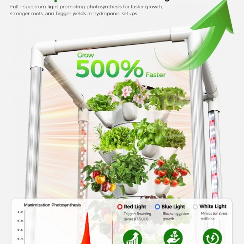 - 【Optimized Indoor Growth】 Hydroponic Tower w/ 360°Grow LightEnsures vibrant plant growth even in low-light indoor spaces by providing essential full-spectrum illumination, mimicking natural sunlight for photosynthesis