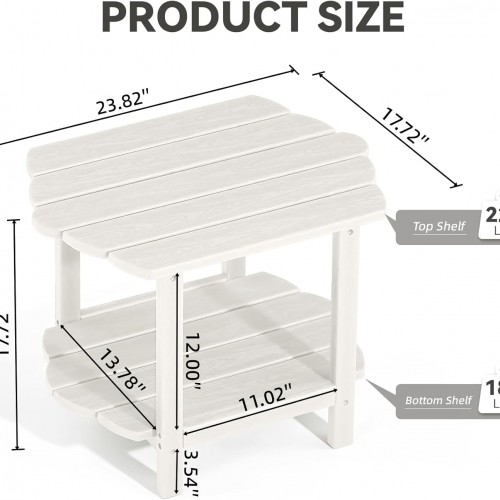 Small Outdoor Side Tables Modern 2-Tier Adirondack Table Rustic End Table HDPE Storage Shelf Industrial Corner Rectangle Coffee Table for Patio Garden Balcony Backyard Pool Farmhouse Home White