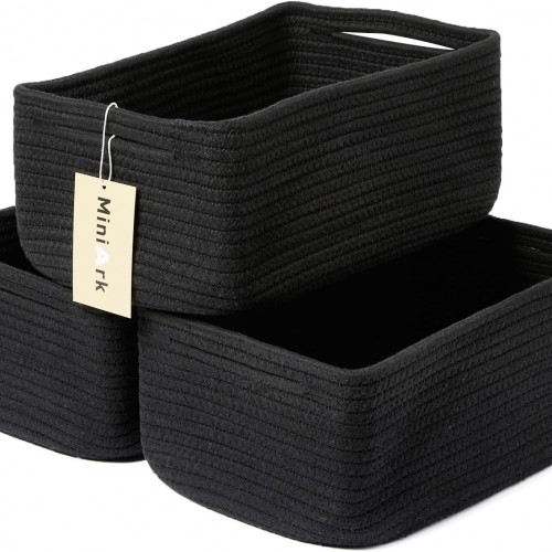Small Storage Baskets for Organizing | Closet Organizer Bins | Shelf Toy Basket | Woven Rope Baskets | Cube Decorative Box | Shallow Basket | 11.5×7.5×4.7” | 3 Packs Green