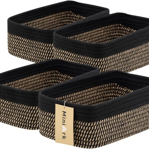 Small Storage Baskets for Organizing | Closet Organizer Bins | Shelf Toy Basket | Woven Rope Baskets | Cube Decorative Box | Shallow Basket | 11.5×7.5×4.7” | 3 Packs Mixed Brown