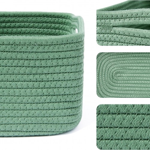 Small Storage Baskets for Organizing | Closet Organizer Bins | Shelf Toy Basket | Woven Rope Baskets | Cube Decorative Box | Shallow Basket | 13×8.5×5.1” | 3 Packs Green
