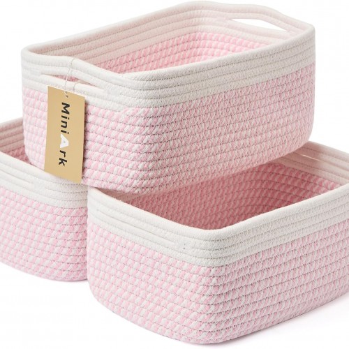 Small Storage Baskets for Organizing | Closet Organizer Bins | Shelf Toy Basket | Woven Rope Baskets | Cube Decorative Box | Shallow Basket | 13×8.5×5.1” | 4 Packs Off White