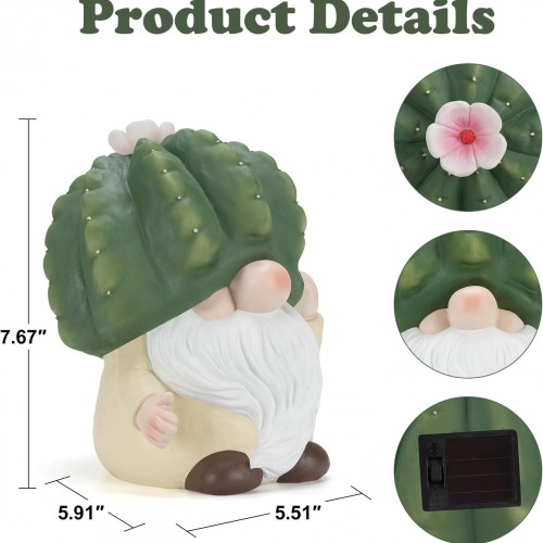 Solar Cactus Gnome Statue Garden Decor Light – Outdoor Decorative LED Flower, Suitable for Patio, Lawnand Garden Decorations, Gifts for Mom