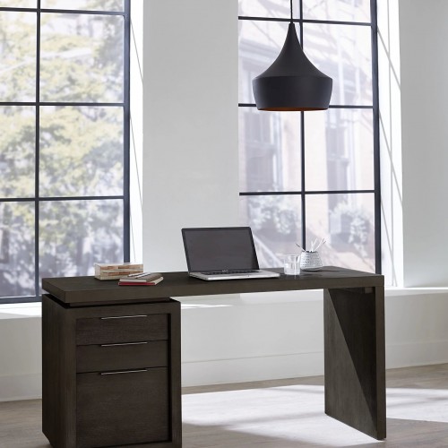 - The single pedestal desk includes lateral file storage for letter- and legal-size