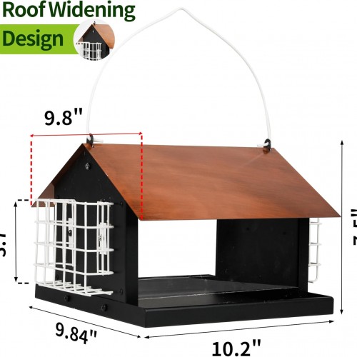 - Included Components : Galvanized Roof, Hopper Tray, Suet Cake