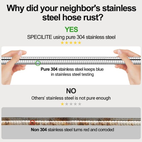 SPECILITE 25ft 304 Stainless Steel Garden Hose Metal, Heavy Duty Water Pipe with Nozzles for Yard, Outdoor – Flexible, Never Kink & Tangle, Puncture Resistant (Sliver)