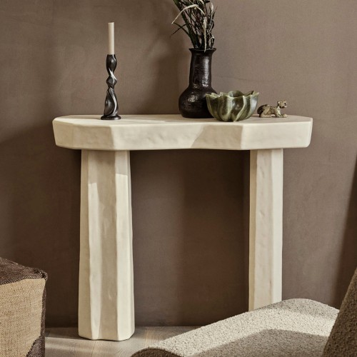 Inspired by the unique volcanic rock formations found on the ancient island of Staffa in Scotland, the Staffa collection features a series of bold furniture pieces. Paying homage to their namesake, which means pillar in old Norse, every piece is crafted entirely from glass fibre reinforced concrete, using an innovative casting process that provides each item with a rough, uneven shape reminiscent of blocks of carved stone. Suitable for both indoor and outdoor use, the Staffa Console Table merges artistry with utility. Its striking appearance and robust design make it a fitting addition to any entryway, hallway or outdoor space, enhancing the area with its sculptural and stately character.
