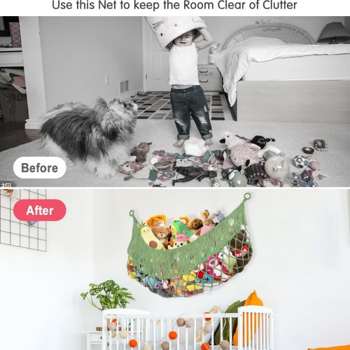 Stuffed Animal Hammock – Extra Large 63” Long, Stuffed Animal Storage, stuffed animal Holder net, Toy Hammock Large, Toy Storage Hanging Organizer – Bean paste green
