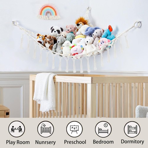 Stuffed Animal Net or Hammock with Light,Yewiwin Macrame Hanging Net Hammock for Stuffed Animal Toy Storage Organizer Boho Decor Room Holder for Nursery Play Room Bedroom (Beige-2)