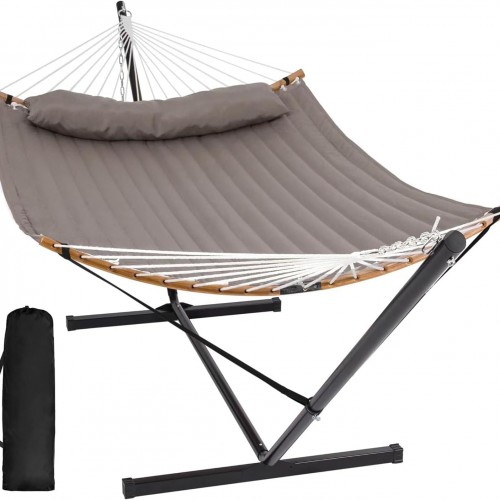- Comfortable and Non-fading: Two-layer 100% quilted polyester fabric with poly fiber filling, cozier and best for camping and the outdoors. Compared with other quilted hammocks, it will not fade after long-term use. A polyethylene-stuffed head pillow offers superior comfort. You can even set your preferred height by hooking the suitable chain section to the hooks on the stand