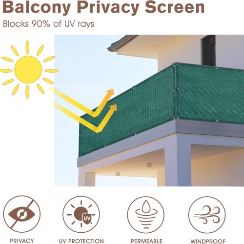 Sunny Guard Customized 3.3’x11′ Dark Green Balcony Privacy Screen,180 GSM Apartments Railing Fence Cover,Heavy Duty Mesh Windscreen for Deck,Outdoor,Backyard,Patio