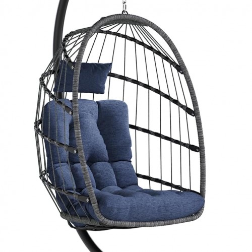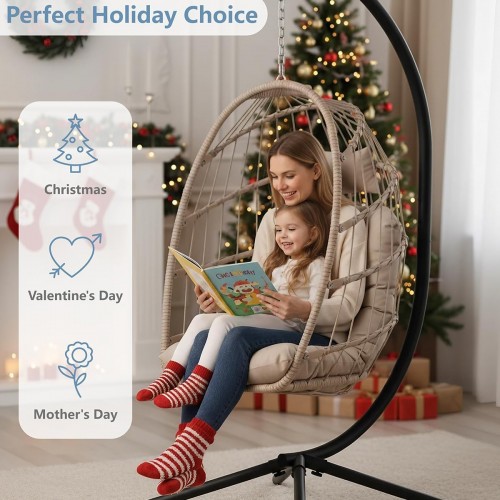 SWITTE Egg Chair Outdoor with Stand, Indoor Wicker Hanging Egg Swing Chair with Cushion, 350lbs Capacity for Patio, Bedroom, Garden – Cream