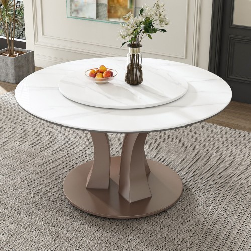 - 53-Inch Scratch-Resistant Tabletop: A wide round sintered stone surface with a polished marble-like finish ensures superior scratch and stain resistance. Rounded edges prevent accidental bumps, enhancing dining safety.