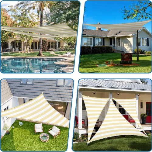 - Permeable Material: Made of 100% brand-new high-density polyethylene knitted fabric, which resists tearing and fading. Note: The fabric is stretchy. The title‘s sizes are for when it’s stretched tight. Be sure to fully extend the sail when installing it, or it’ll be too small. You could also pick a slightly bigger size