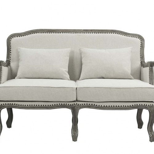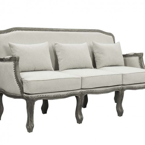 Finely crafted with superb carved details and a lovely natural finish, the Tania sofa flaunts a French cabriole silhouette that perches on graceful cabriole legs and showcases its antique-inspired profile. The nailhead trim accents give this piece a modern touch. It is beautifully upholstered in natural cream linen to complement your home and magnify your personal style.