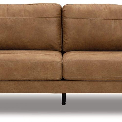 - Genuine leather covers the cushion top; skillfully matched faux leather covers the remaining areas