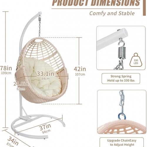 TWT Egg Swing Chair with Stand Rattan Wicker Hanging Egg Chair for Indoor Outdoor Bedroom Backyard Hammock Egg Chair with Metal Frame and UV Resistant Cushion 330lbs Capacity-Pink