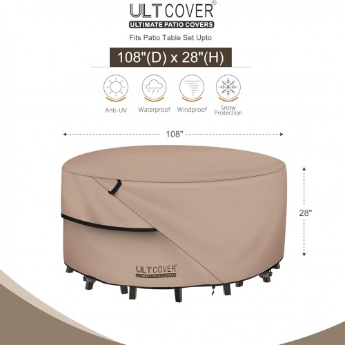 - General to fit round patio table set size up to 108” Diameter. Please be remind the include distance that chair backs jut out from the table while measuring.