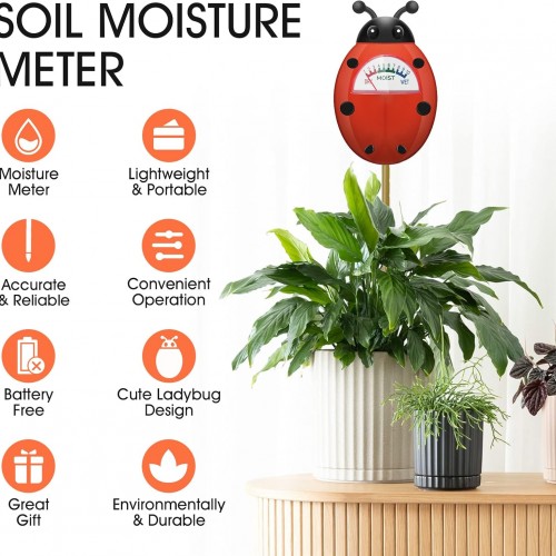 - 【CUTE LADYBUG DESIGN & PERFECT GIFT】Spruce up your garden tools with this fun and functional ladybug-themed moisture meter.Cute ladybug shape, suitable for children’s gardening activities, and a perfect and practical gift for friends, kids, gardeners and others.