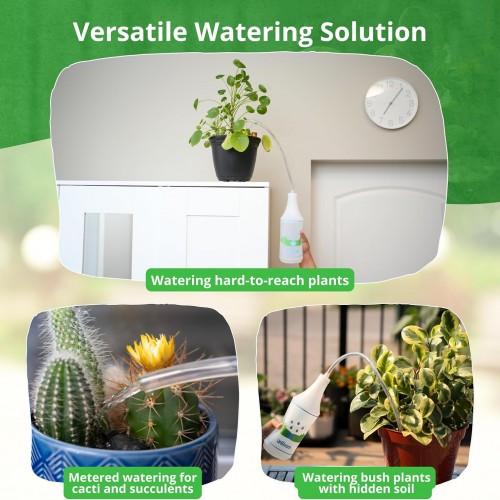 - Effortless Watering: Our positionable long-neck squeeze bottle tube stays put in any direction or angle, allowing you to direct water exactly where your plants need it – between the leaves and to the root base. This squirt bottle’s continuous tube eliminates the need for assembly, making it easy to water hard-to-reach plants without straining your back or wasting water. Say goodbye to your clumsy watering can and other plant watering devices and start using our watering container!