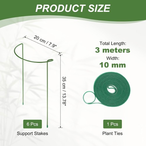 uxcell 6Pcs 13.8 Plant Support Stakes with 9.84ft Plant Ties, Half-Round Metal Garden Flower Stakes Peony Cages and Supports Plants Holders for Tomato, Rose, Indoor and Outdoor
