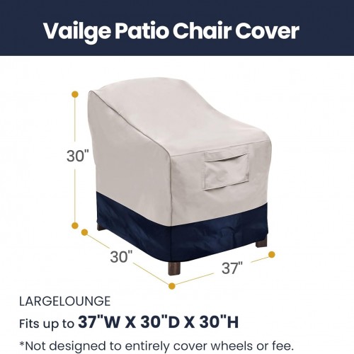 - MAXIMUM PROTECTION: Featuring Heavy Duty 100% 600D Oxford fabric, this Valige patio cover is made to protect your patio furniture from outdoor elements like sun, dirt, rain, snow.Our 2 Pack Beige & Brown Large chair cover measures 37″W x 40″D x30″H which fit up to the chair 35″W x 38″D x31″H. Please measure your chair dimensions before purchasing.