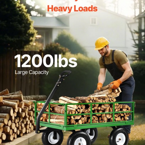 - 1200 lbs High Load Capacity: This garden cart wagon is designed to carry heavy loads effortlessly. Whether you’re moving soil, stones, or heavy tools, its impressive 1200-lb capacity eliminates repeated trips, making your outdoor tasks more efficient and stress-free.