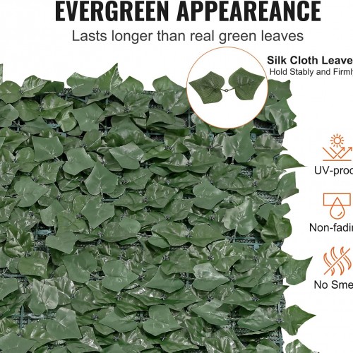 - 100% Blockage: The leaves are positioned closely together, forming a natural barrier that blocks intense sunlight and unwanted views. Despite their density, the faux ivy screen still allow for airflow through the mesh back. The reinforced connections ensure the leaves remain securely attached to the panels, preventing them from being blown away by harsh conditions.