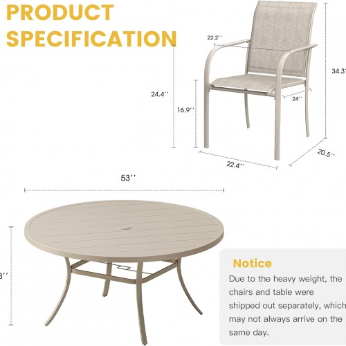 - 【Size Information】Round table-60″x 60″x 28″, weight capacity: 300 lbs. Chairs-22.4″x 20.5″x 34.3″, Seat Height: 16.9″, weight capacity: 250 lbs. We will get back to you within 24 hours if there are any problems