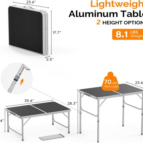 - MULTIPURPOSE TABLE: The foldable table is universal . Perfect for outdoor and indoor activities, camping, picnic, hiking, fishing, Dining, BBQ, party, travel, gathering, concert, sports, event.