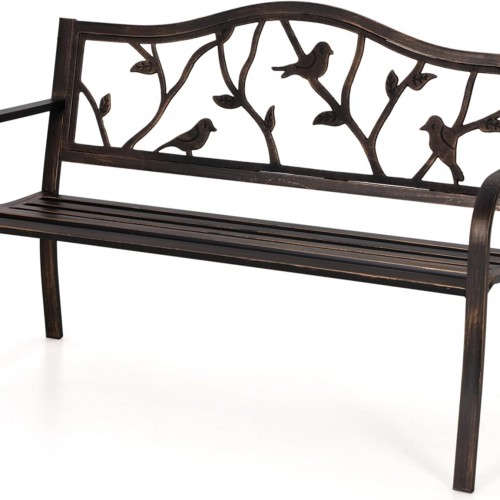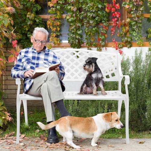 VINGLI 40.5″ Patio Garden Bench,Anti- Rust Cast Iron Cast Aluminum Frame for Outdoor Path Yard Lawn Work Entryway Decor Deck (White)