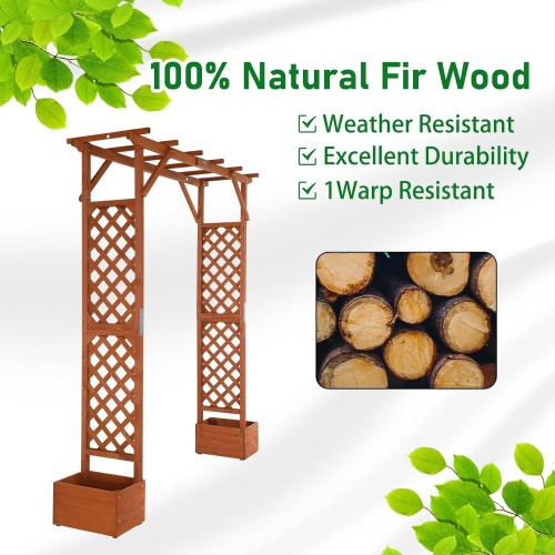 - 【Stable Structure with 2 Planter Box】The wooden garden arbor, which comes with 2 planter boxes, is designed to provide stability for holding a wide variety of plants. It features a convenient hole at the bottom to facilitate water out and maintain soil nutrient